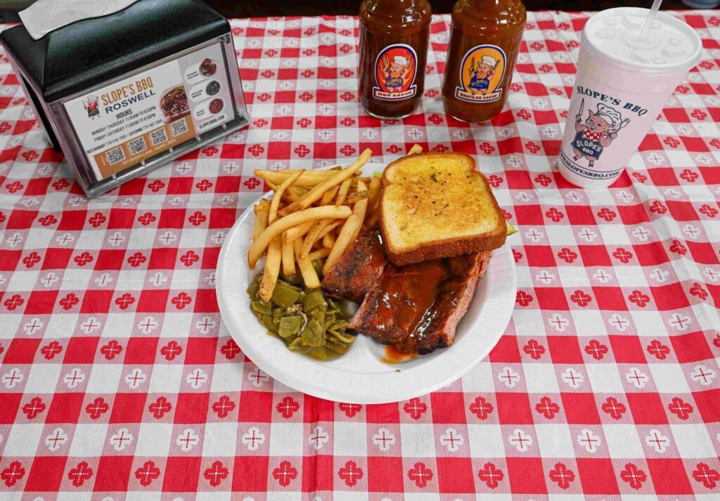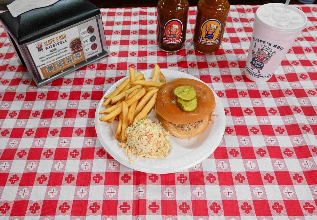 Slope’s BBQ Roswell is located at 34 E. Crossville Road, Roswell, Georgia. We are open for breakfast, lunch and dinner. Available for dine-in, takeout (order online for PICKUP), delivery (DoorDash, GrubHub, UberEats) and catering.